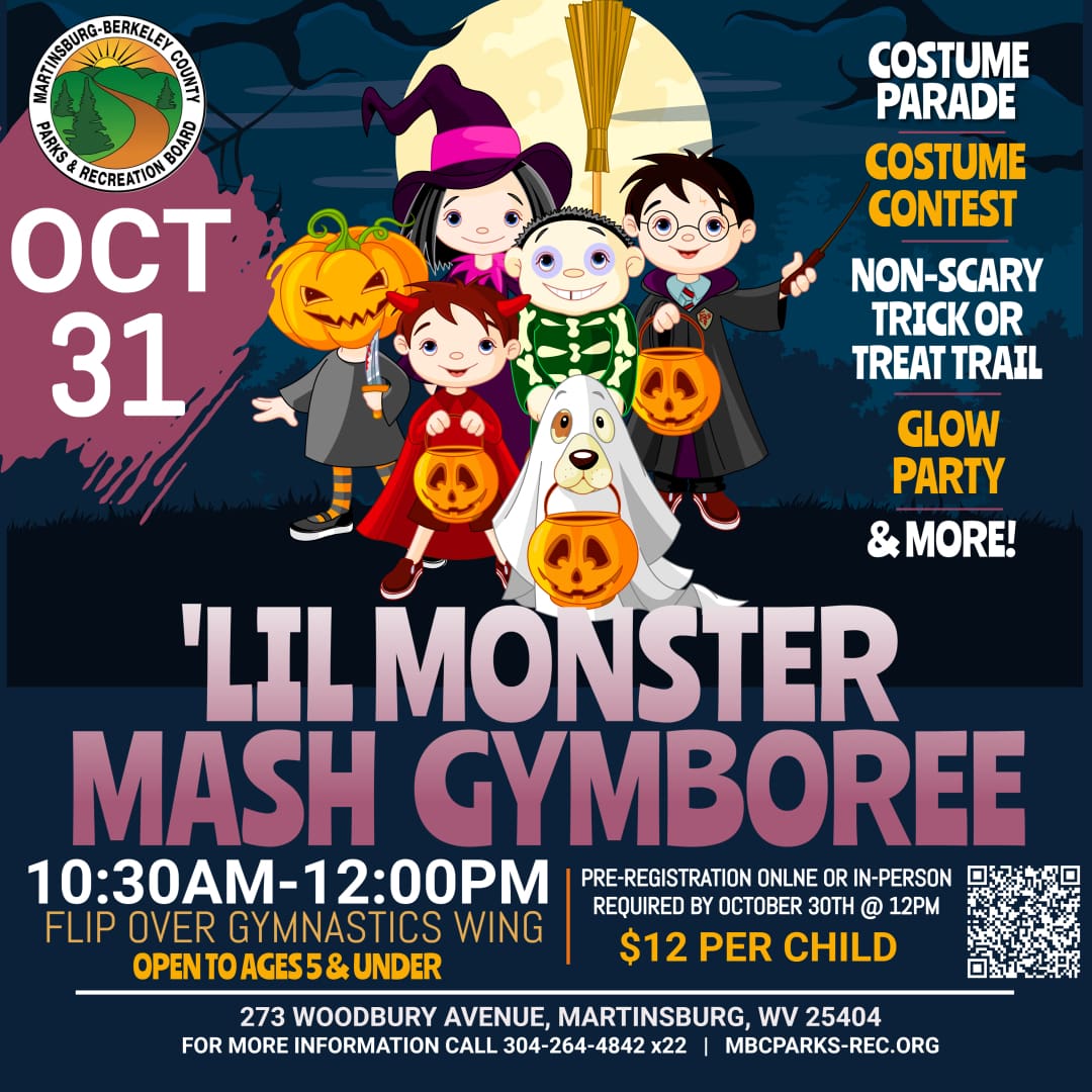 Join us in Flip Over Gymnastics for a costume parade, costume contest, non-scary trick or treat trail, glow party, and more!